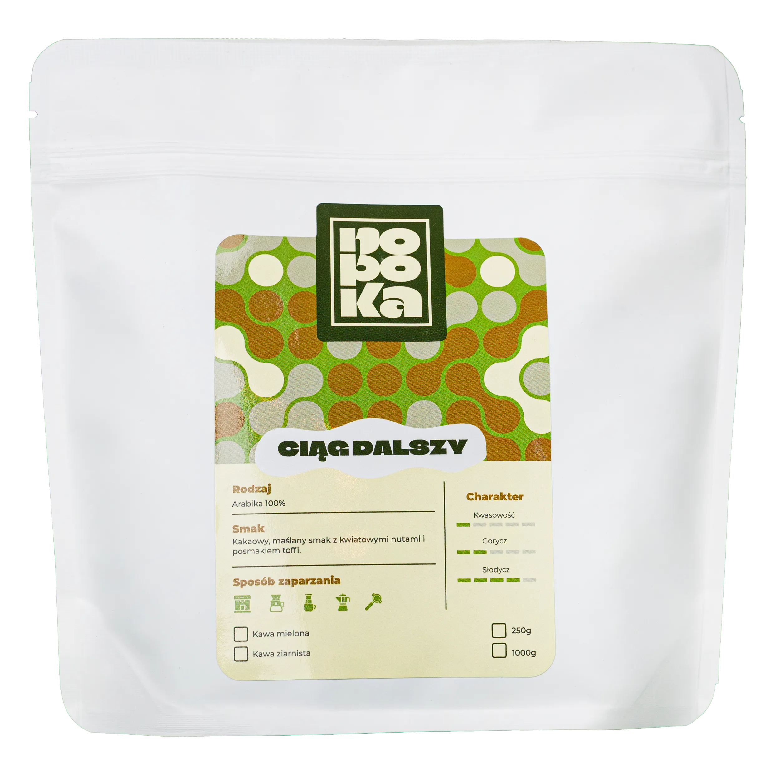Profil smakowy: Łagodna, maślana i delikatna. W kubku poczujesz subtelne nuty kakao, kwiatowe akcenty i maślane body, które otula podniebienie. Niska kwasowość i minimalna gorycz, a na finiszu słodkie toffi.